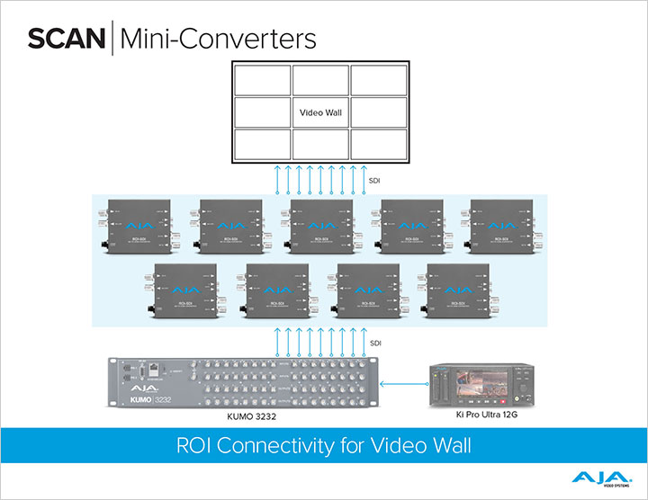 AJAのROIスキャンコンバータシリーズは、小型のミニコンバータというコンパクトな筐体で、コンピューター信号とビデオ信号の高品質な変換を実現します。ROIはROI(Region of Interest)をサポートし、コンピューター信号とDVI、DP、HDMI、3G-SDIなどのビデオソース信号を抽出し、3G-SDI(一部のモデルではHDMI)ビデオに変換できます。優れた画像スケーリングと回転、そして幅広いアスペクト比とフレームレート変換機能を備えたROIは、コンピューター信号とビデオソースを必要な解像度にリアルタイムでスケーリングするニーズに応えます。しかも、持ち運びやすく使いやすいパッケージです。