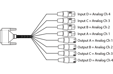 • バランスアナログオーディオ、コンバータ上の1x 25ピンDメスコネクタ、4チャンネル入力、4チャンネル出力