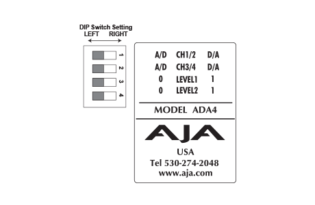 アクセスしやすい DIP スイッチにより、制作中でも ADA4 のオーディオ レベルをすばやく明確に設定できます。