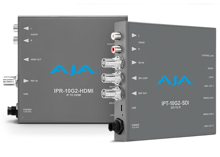 AJA eMini-Setup アプリケーションを使用すると、ホスト コンピュータに接続された USB ケーブルを介して、コントロール LAN およびメディア LAN 1 と 2 の初期ネットワーク構成と IPT および IPR ミニコンバータのファームウェア更新が可能になります。