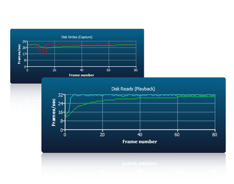 結果を MB/秒または FPS としてグラフ表示して表示すると、パフォーマンスの傾向を簡単に把握できるようになります。