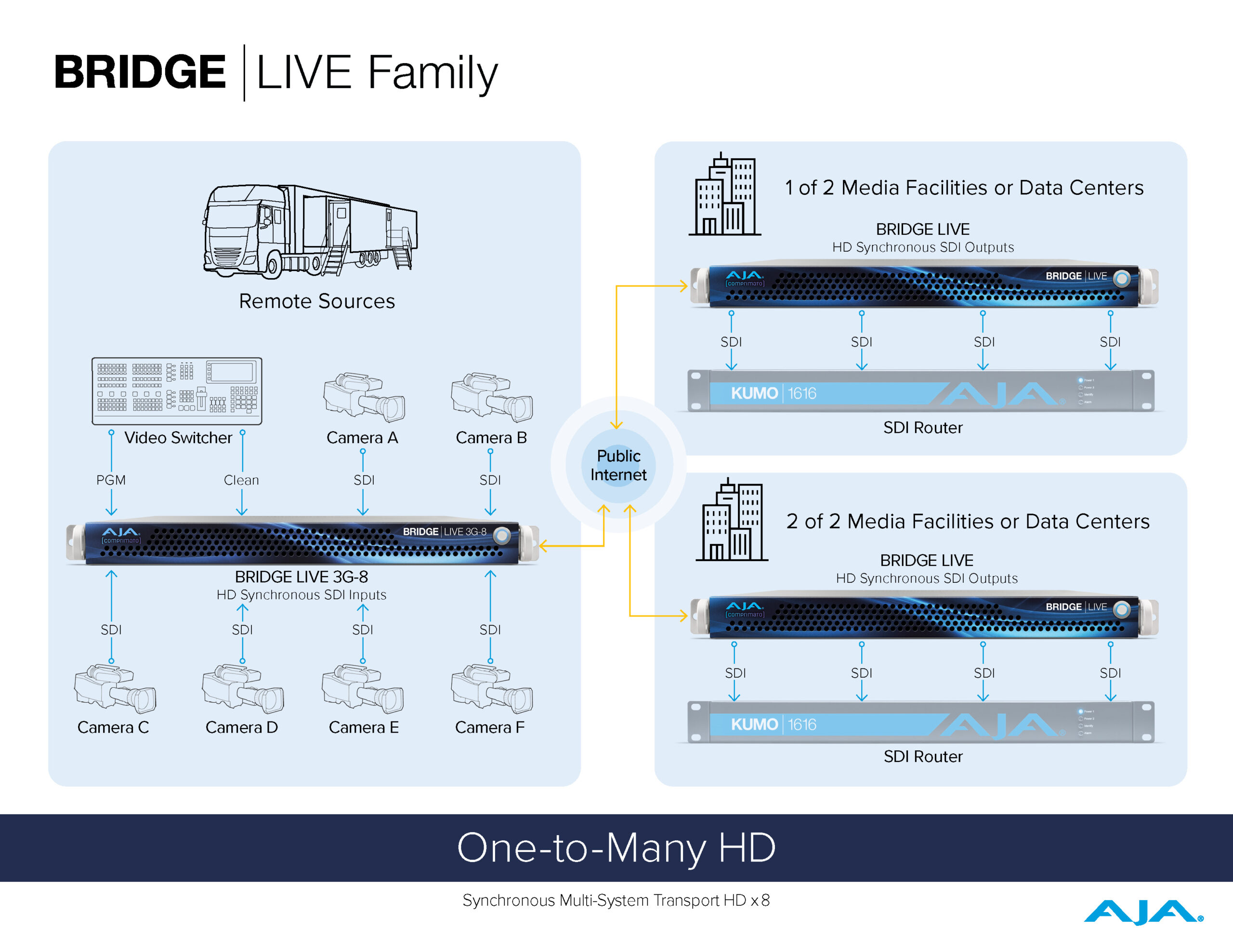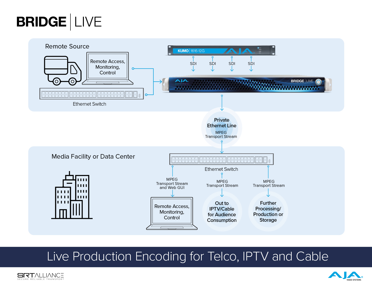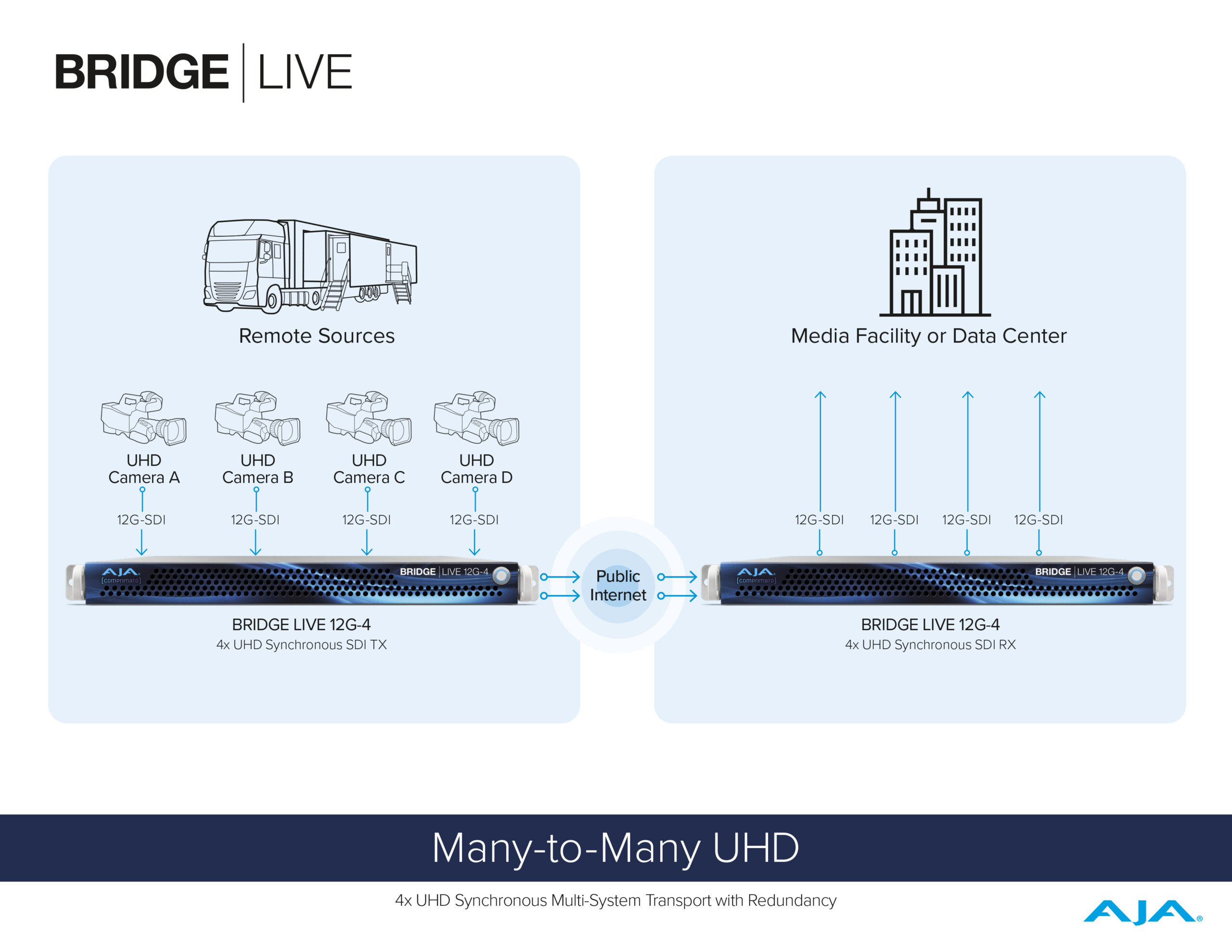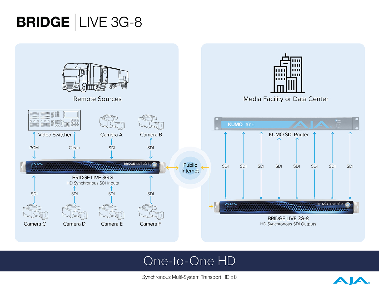 AJA ストリーミング ソリューションには、最新のストリーミング ソフトウェア、コーデック、フォーマット、トランスポート プロトコル、配信プラットフォームをサポートするスタンドアロンおよびモジュラー I/O デバイスが含まれています。
