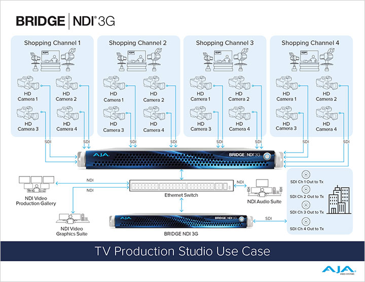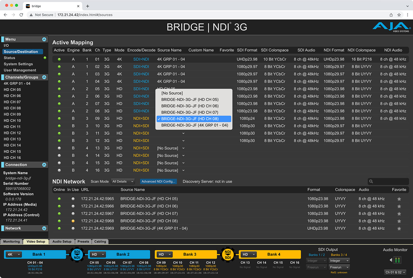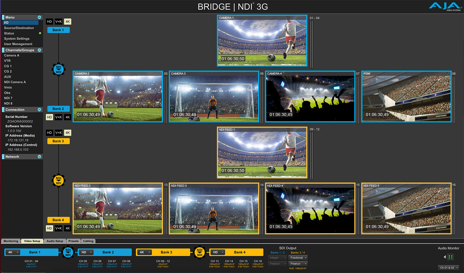 BRIDGE NDI 3Gは、マルチチャンネルHDと4K/UHDの両方において、3G-SDIからNDI、NDIから3G-SDIへの高密度変換を実現する1RUゲートウェイです。プラグアンドプレイアプライアンスとして既存のNDIまたはSDIワークフローに組み込めるよう設計されており、導入と管理が容易です。