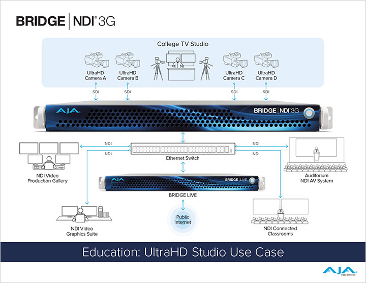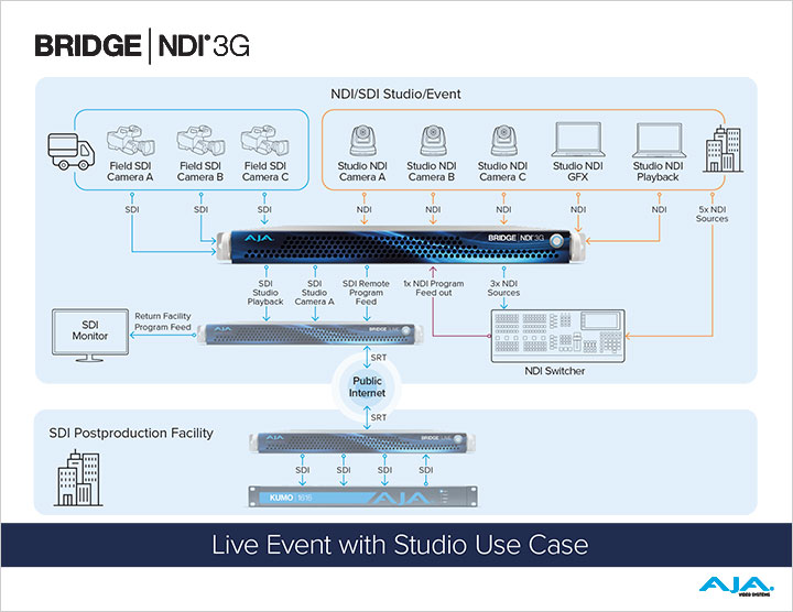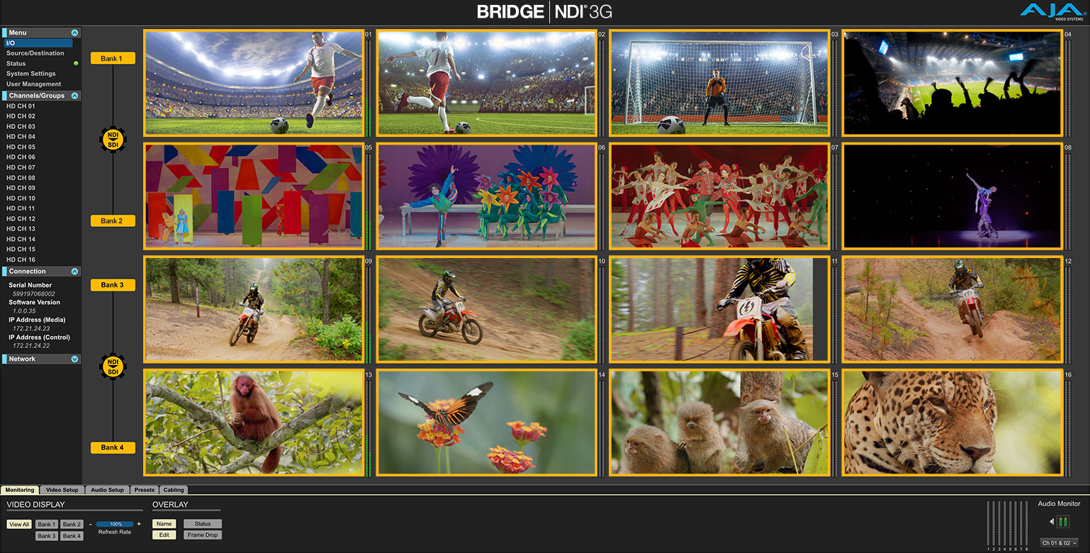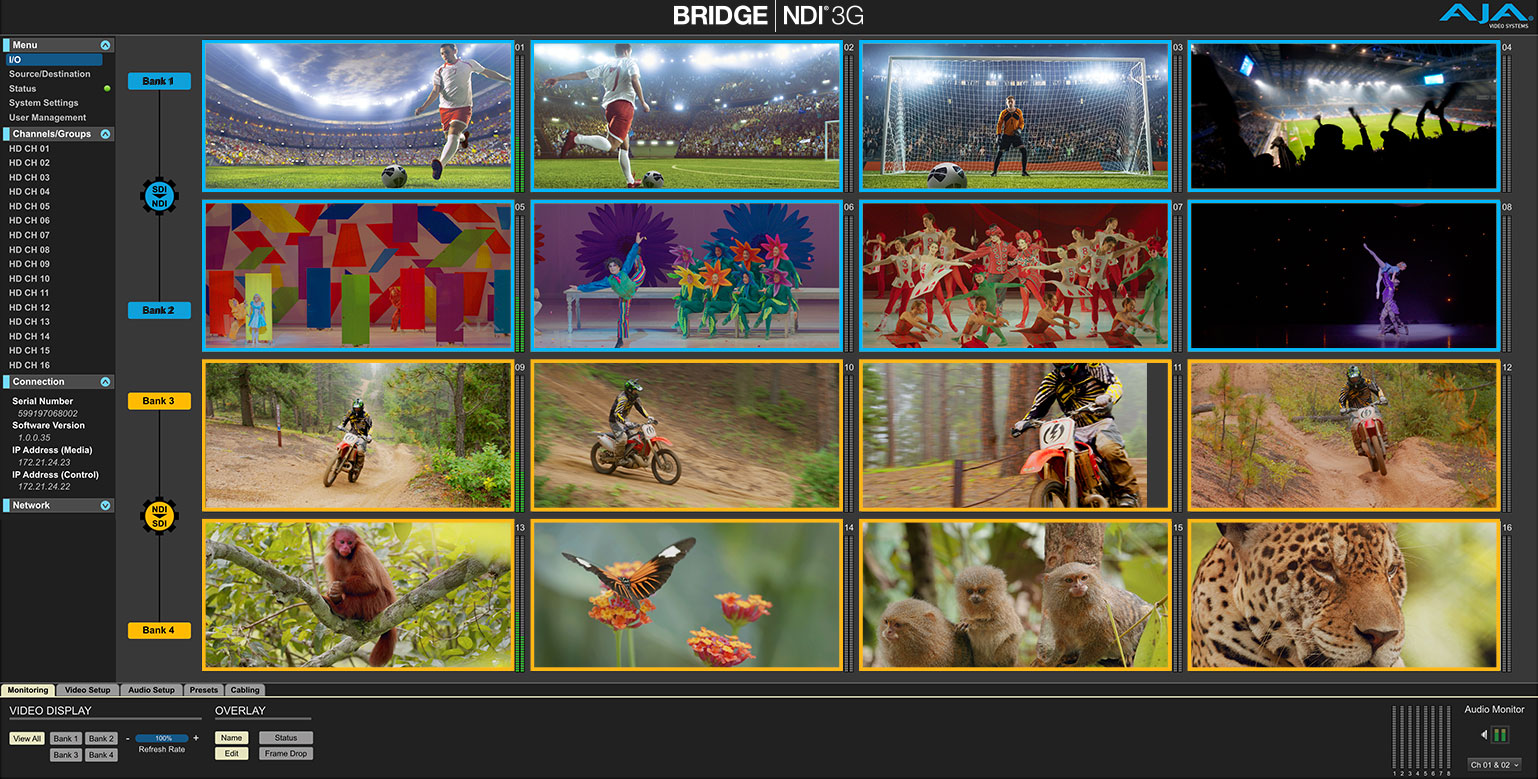 BRIDGE NDI 3Gは、AV、セキュリティ・監視、放送、eスポーツ、エンターテイメント施設など、高品質で効率的なNDIエンコード/デコードを必要とする幅広い施設において、圧倒的な変換能力と柔軟性を備え、リモートコントロールも完全に可能です。設定後は放っておくことも、プロジェクトのニーズに合わせてよりダイナミックに活用することも可能です。