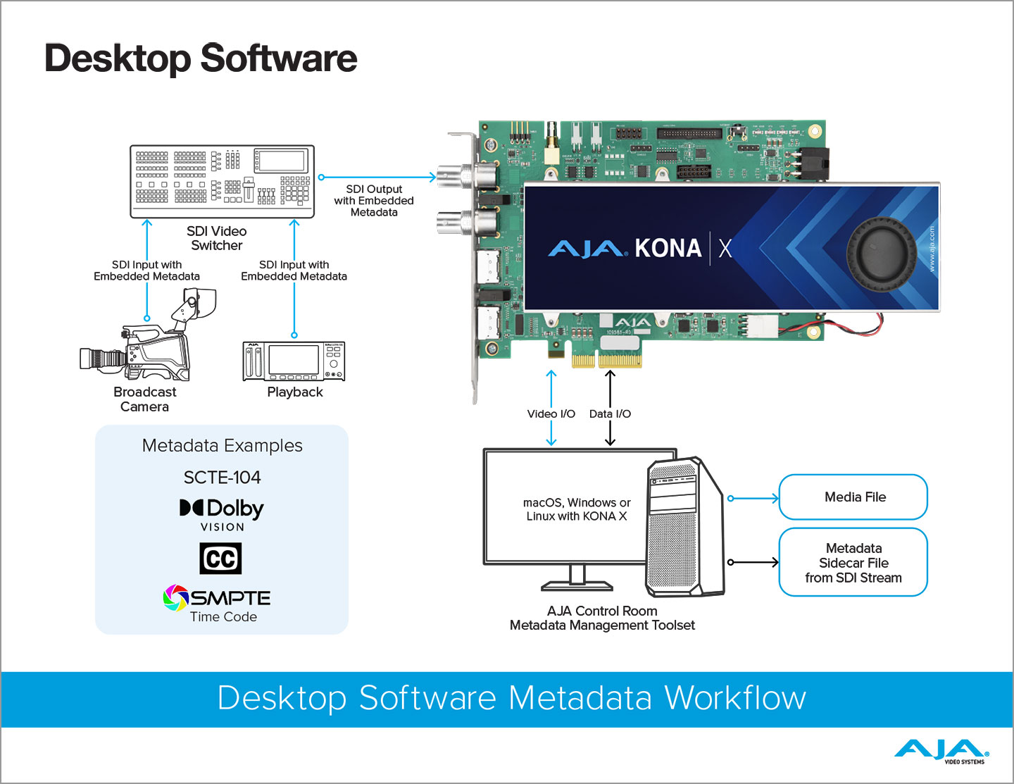 コンポジット、コンポーネント、3G-SDI、HDMI から放送用 IP まで、AJA のデスクトップソリューションはあらゆるプロジェクトに必要な入出力を提供します。詳細は KONA デスクトップ I/O ファミリーをご覧ください。