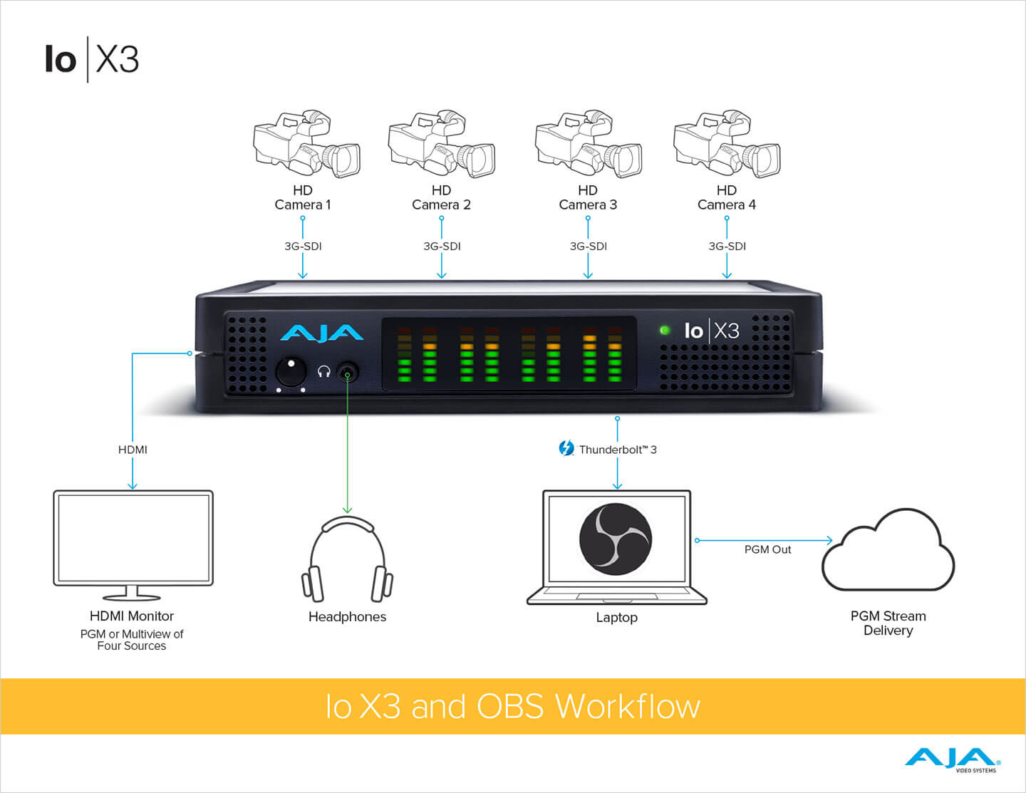AJA ストリーミング ソリューションには、最新のストリーミング ソフトウェア、コーデック、フォーマット、トランスポート プロトコル、配信プラットフォームをサポートするスタンドアロンおよびモジュラー I/O デバイスが含まれています。