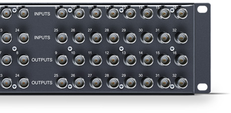 KUMO 6464は、コンパクトな4RUプロファイルを維持しながら、64系統の3G-SDI入力と64系統の3G-SDI出力による3G-SDI/1.5G-SDIをサポートし、より大規模な構成にも対応できる高い容量を提供します。デュアルポートおよびクアッドポートの連動ルーティング制御をサポートし、複数の入出力をグループ化してデュアルリンクおよびクアッドリンク4K/UHDワークフローを実現できます。