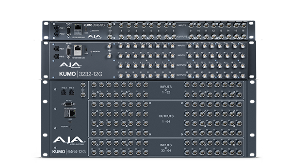 • AJA KUMO CP (最初の32 I/Oはシングル/ノーマル、全I/Oはデュアルまたはクアッドモード) – 1RU XYイーサネットコントロールパネル