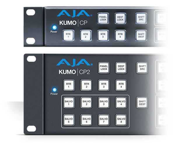 • AJA KUMO CP2 (シングル/ノーマル、デュアルまたはクアッドモード) – 2RU XYイーサネットコントロールパネル