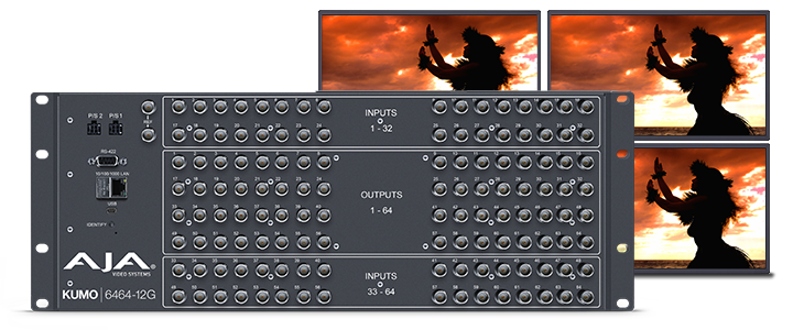 すべての AJA 製品と同じ品質基準に基づいて製造された KUMO 6464-12G は、バーチャルプロダクション、ポスト施設、移動トラックなど、サイズ、パフォーマンス、信頼性、容量のバランスが重要なあらゆる状況に最適です。