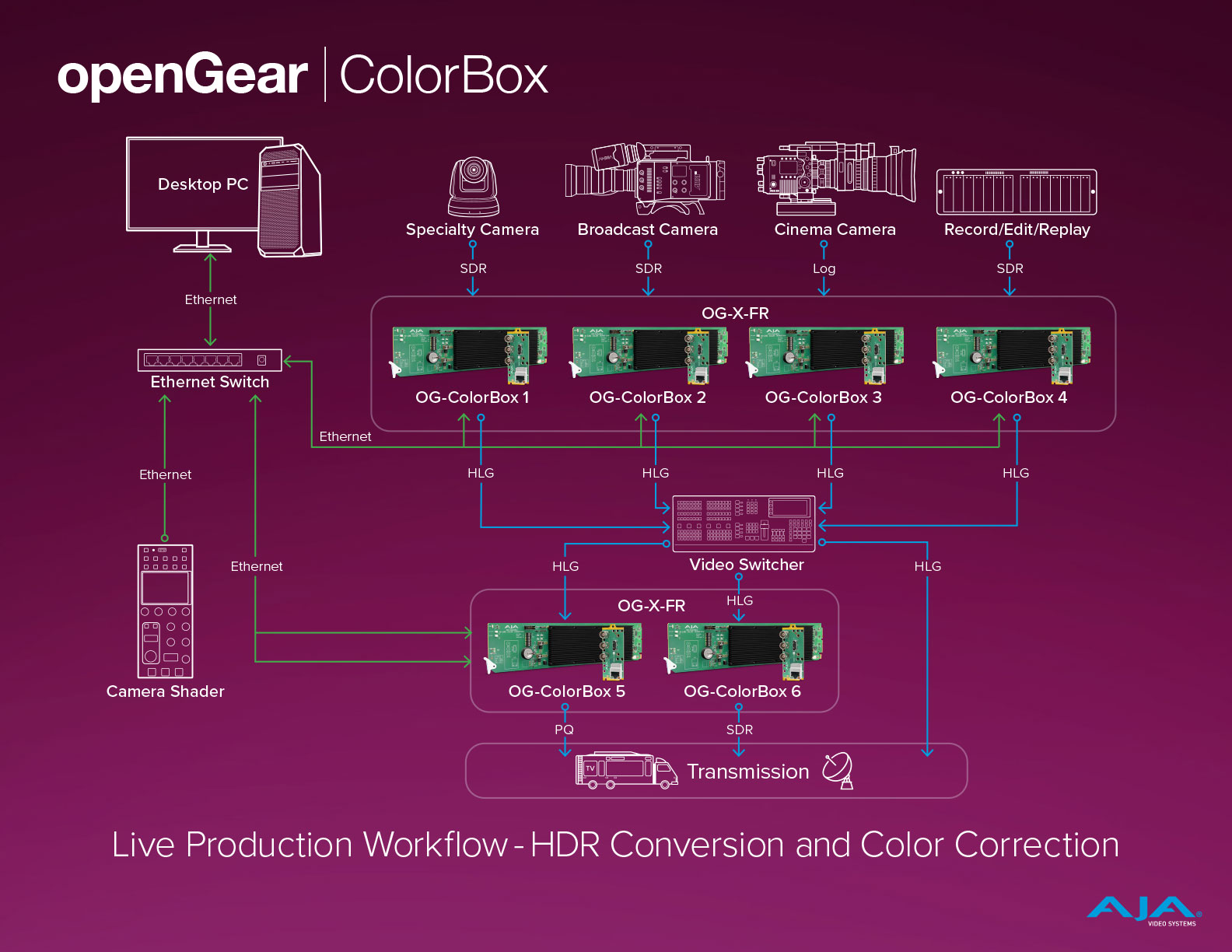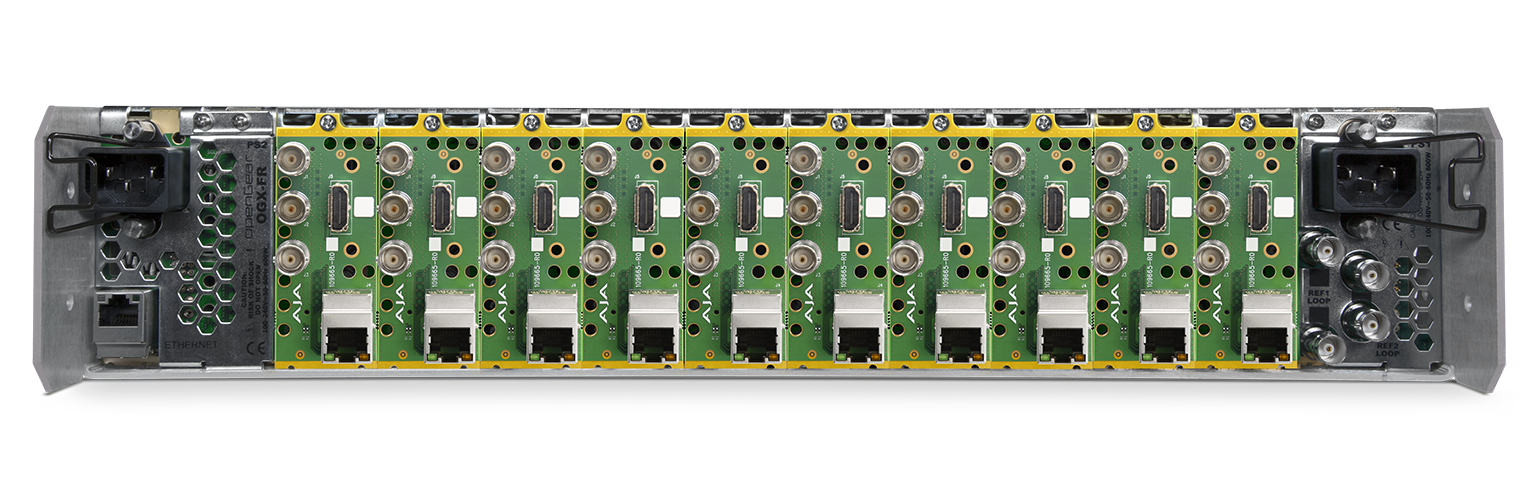 便利なラックベースの変換、DA、ファイバーのニーズに応える openGear および AJA ラックフレームとコンバーター。