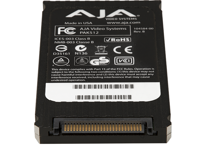 AJA PAK Dock Pro(別売)を使用すると、USB 3.2 Gen 2規格に準拠したUSB-C経由で映像を転送できます。PAK Mediaには1年間の保証が付いています。