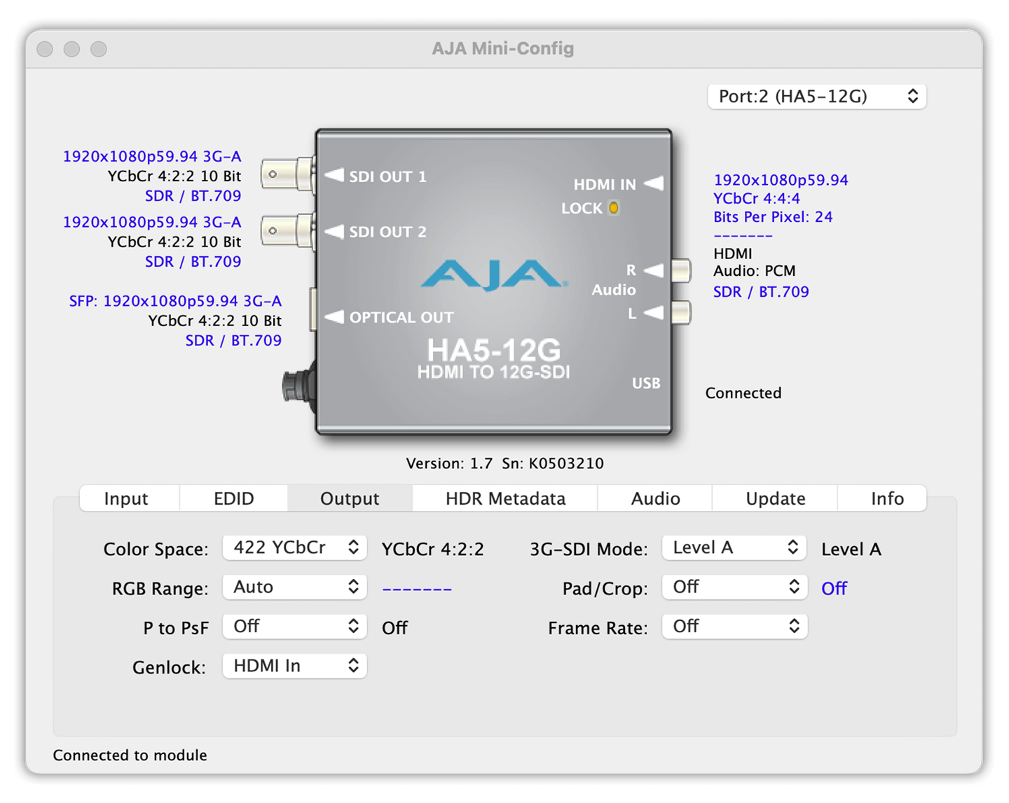 HDMI から SDI への変換には HA5 ミニコンバーターを選択し、SDI から HDMI への変換には Hi5 ミニコンバーターを選択します。
